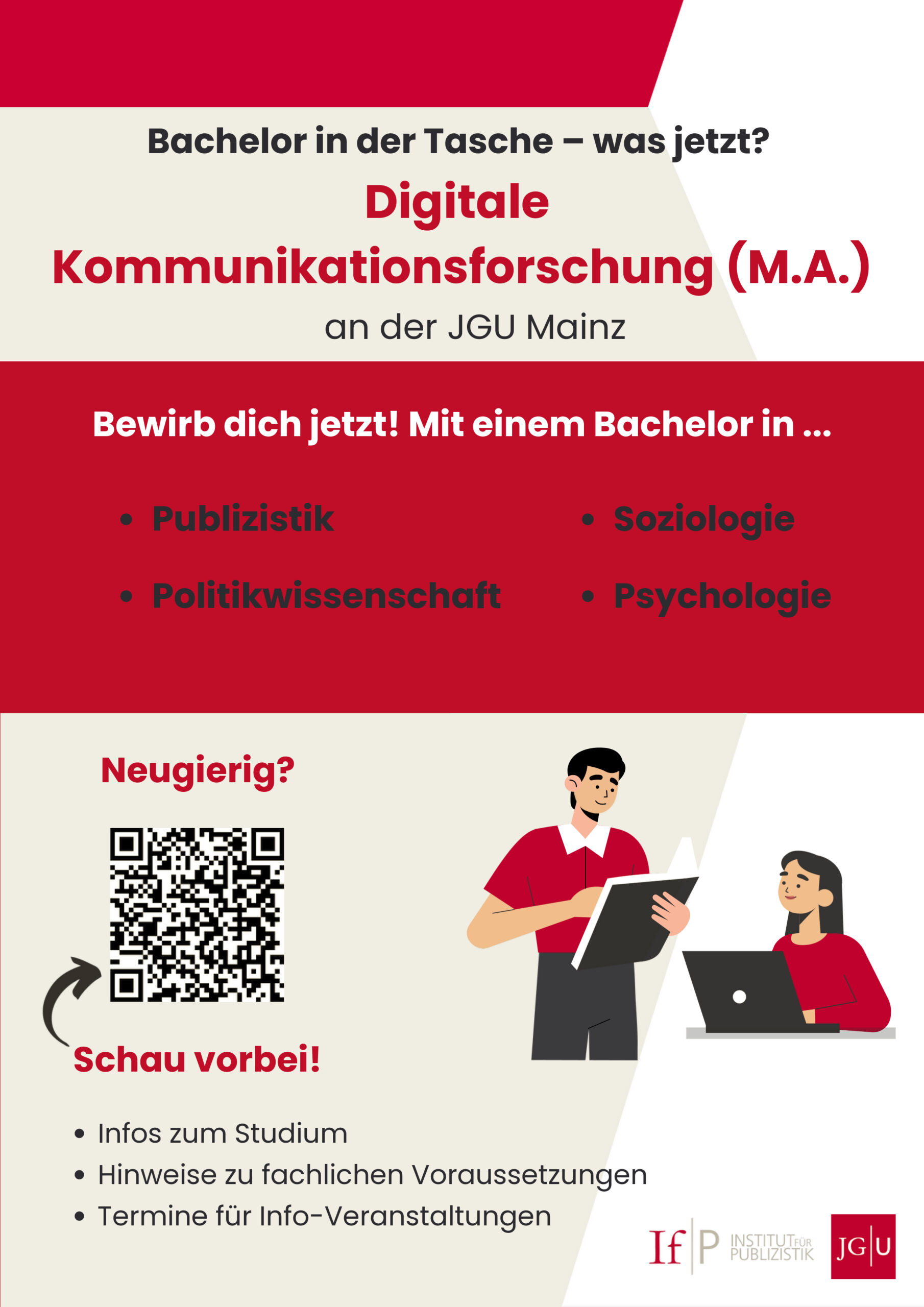 - Mehr Infos zum Studiengang und den fachlichen Voraussetzungen: https://www.studium.uni-mainz.de/studienwahl/studienangebot/digitale-kommunikationsforschung-ma/