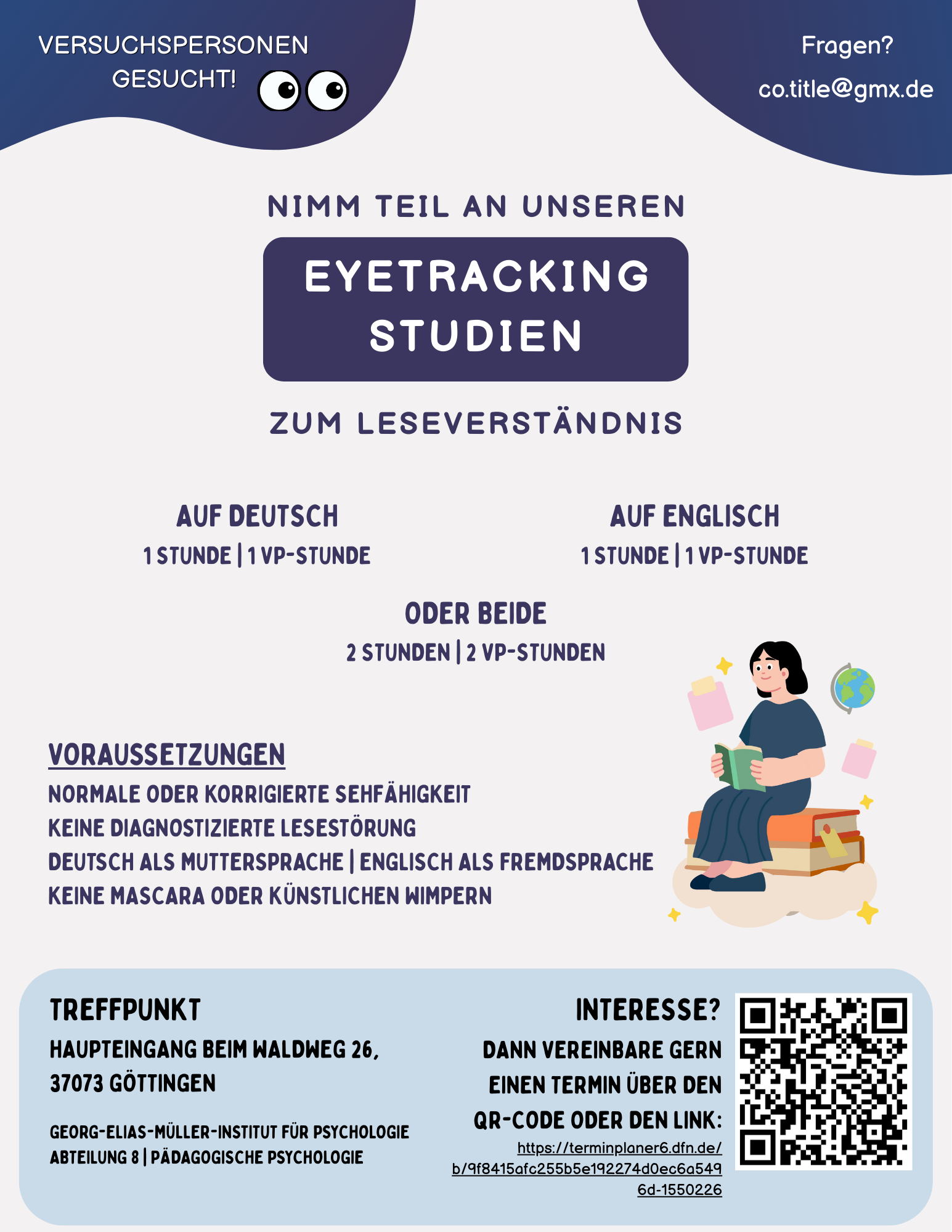 Wir suchen Teilnehmende für unsere Studien zum Leseverständnis und würden uns sehr über eure Unterstützung freuen.
